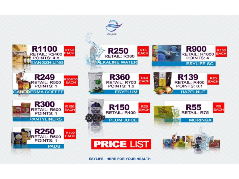 Green world, DXN and Esylife products ( Fibroids care, Infertility care, High blood pressure combo, Skin care combo, Prostate care combo,Parasites care, Slimming combo,etc any disease products can be ordered and delivered to your door step ).